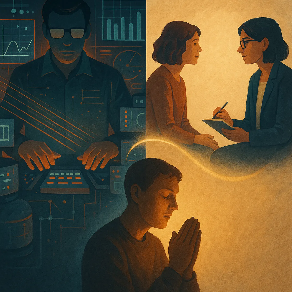 A psychologist sits with someone—listens,